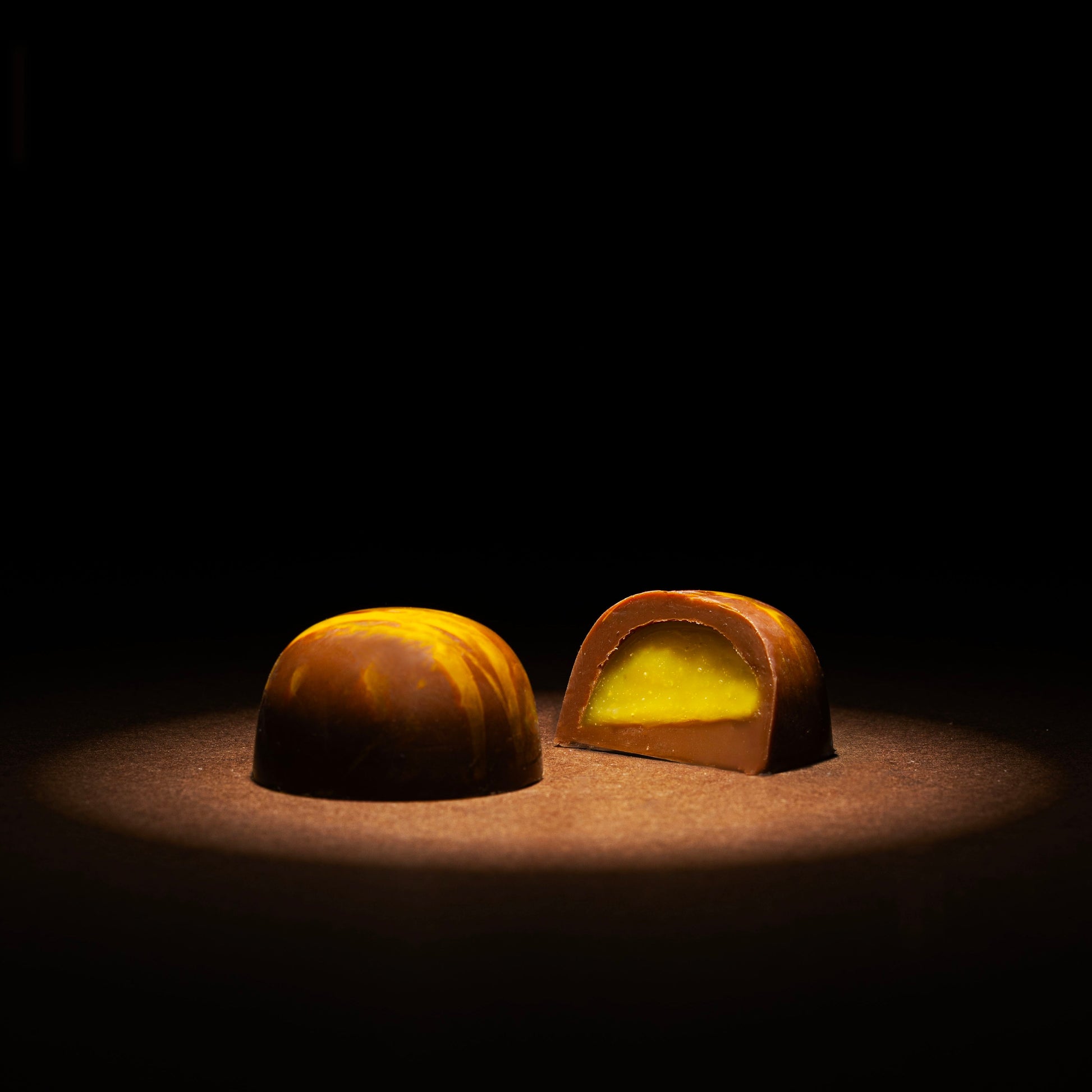 This box is an ode to the art of pairing playful, bold, and irresistibly balanced. From passion fruit to rum truffle, each chocolate is a dance of contrasts, crafted for those who find harmony in every indulgence.